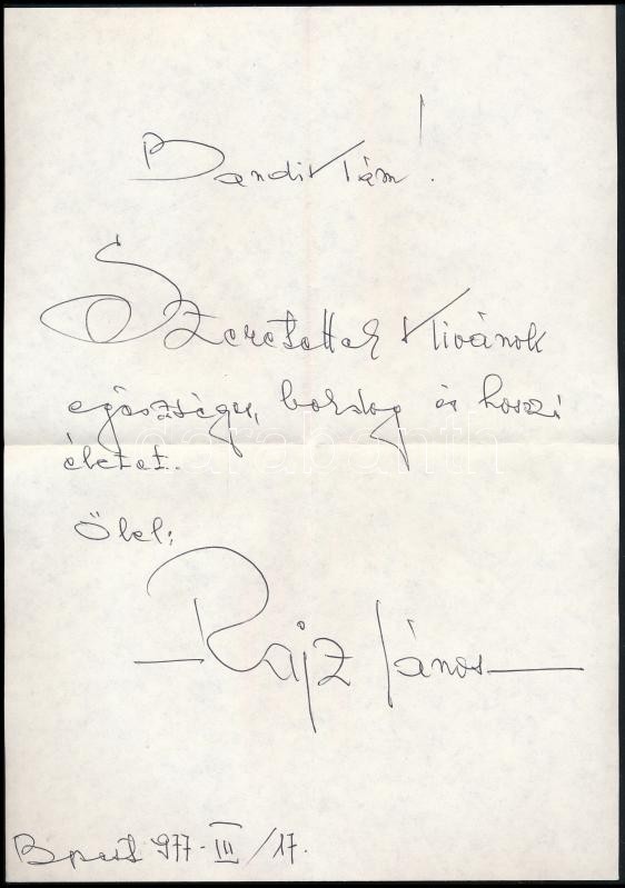 1977 Rajz János (1907-1981) színész saját kézzel írt és aláírt levele ... https://www.darabanth.com/de/419-Fernauktion/419.0/Kunst-Dokumente-andere-Sammelgebiete/Historische-Dokumenten-Handschriften~500032/1977-Rajz-Janos-1907-1981-szinesz-sajat-kezzel-irt-es-alairt-levele-Marton-Endre-rendezo~II2650470