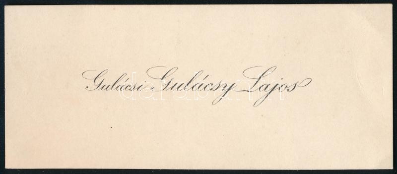 Beschreibung: Gulácsy Lajos (1882-1932) festőművész névjegykártyája, hátoldalán saját kézzel írt sorai Kézdi-Kovács László (1864 - 1942) festmőművésznek, 4,5x10,5 cm