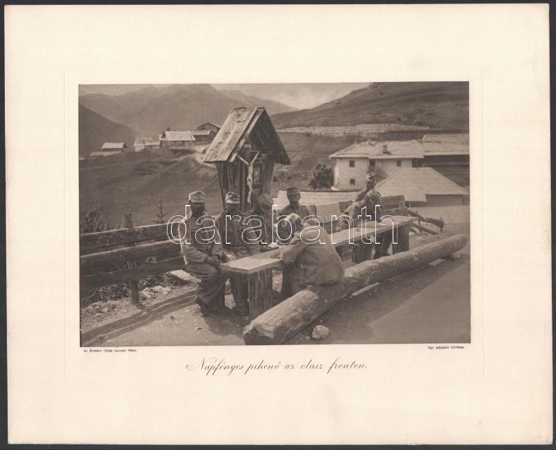 cca 1914-1918 3 db I. világháborús nyomat: Napfényes pihenő az olasz fronton. Az Érdekes Újság harctéri képeiből. (Az Országos Magyar Hadimúzeum Egyesület kizárólagos terjesztése). Bp., Légrády Testvérek kiadása. Minimális foltokkal. 17x25 cm