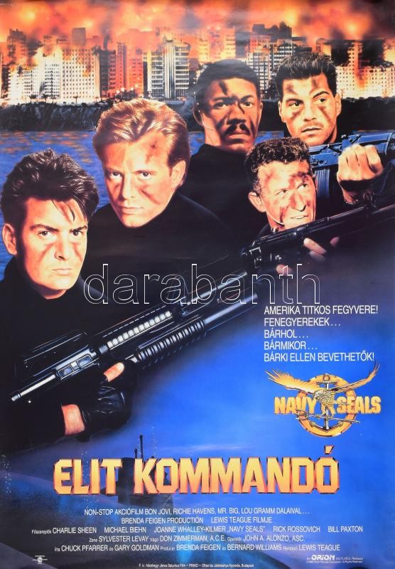 1990 Elit kommandó, amerikai film, nagyméretű filmplakát, moziplakát, főszereplő: Charlie Sheen, Michael Biehn, Joanne Whalley, szélén apró szakadásokkal 80x56 cm