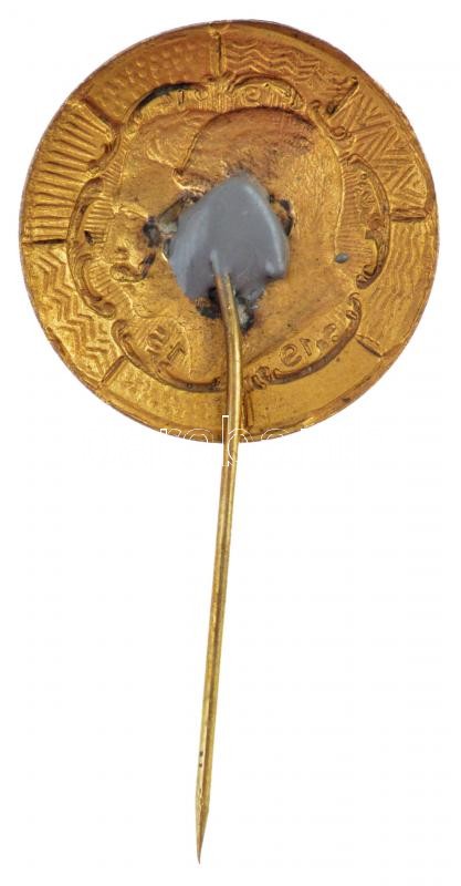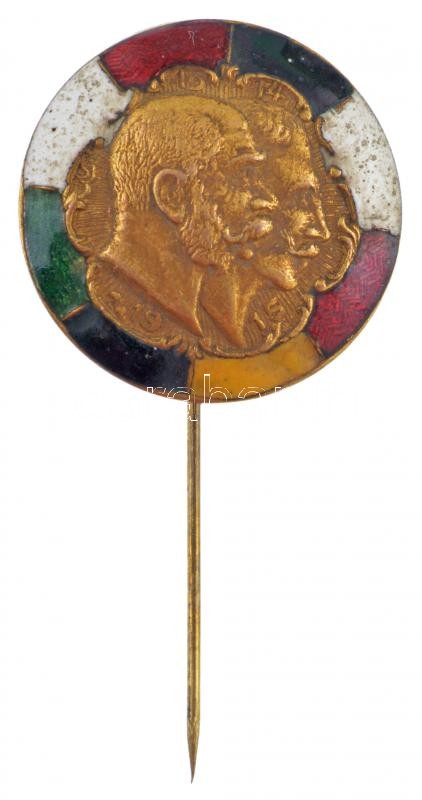 1915. Ferenc József és II. Vilmos portréját ábrázoló zománcozott, bronz háborús propaganda jelvény (25mm) T:2 javított tű / Austro-Hungarian Monarchy 1915. Enamelled bronze war propaganda badge, depicting Franz Joseph and Wilhelm II (25mm) C:XF repaired needle