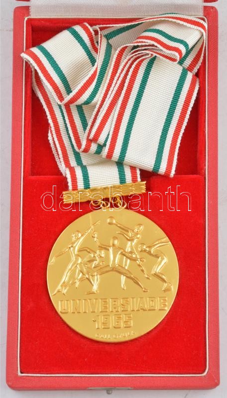 Gáll Gyula (1939-) 1965. "Universiade 1965" aranyozott bronz... https://www.darabanth.com/de/419-Fernauktion/419.0/Numismatik/Sportpreise-und-Sportgedenkmedaillen~2000024/Gall-Gyula-1939-1965-Universiade-1965-aranyozott-bronz-atletikai-dijerem-nyakszalagon-ere~II2626410