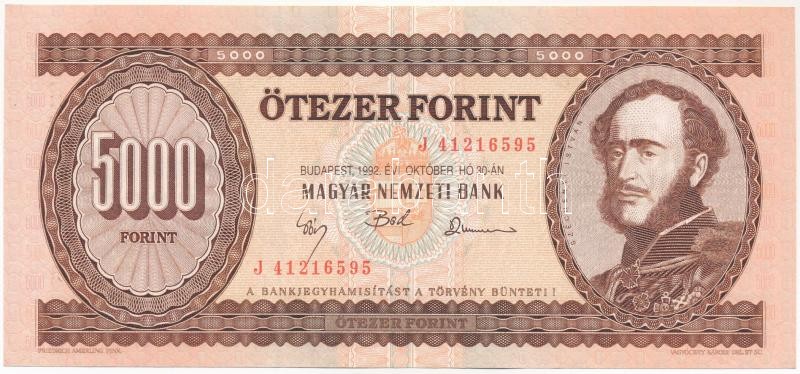 Beschreibung: 1992. 5000Ft "J 41216595" T:II több kisebb hajlás Adamo F49