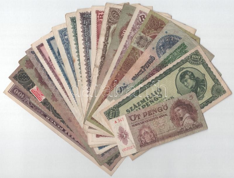 Beschreibung: Vegyes 18db-os pengő bankjegy tétel, mind különféle T:III,III-