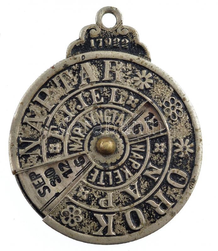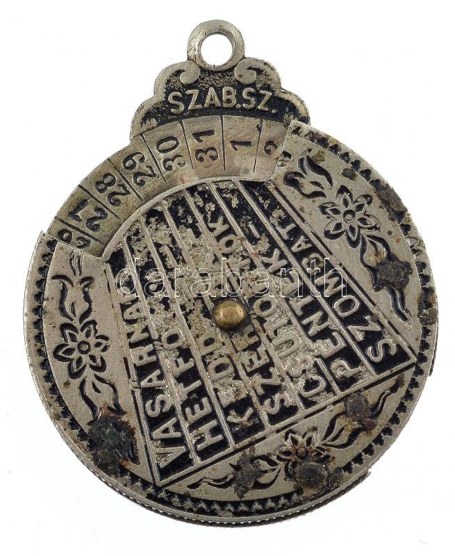 ~1900. "Öröknaptár" forgatható fém naptár medál (26mm) T:2 https://www.darabanth.com/de/419-Fernauktion/419.0/Numismatik/Ungarische-Gedenkmunzen-Plaketten~2000010/7E1900-Oroknaptar-forgathato-fem-naptar-medal-26mm-T2~II2650181