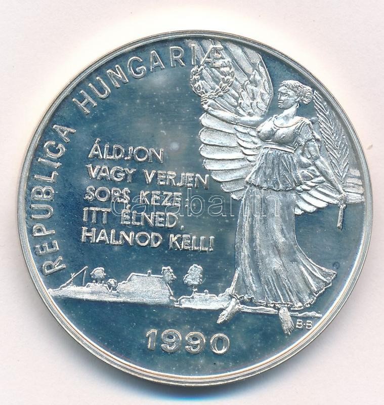Bajnok Béla (1937-) / Szabó Géza (1939-) 1990. "Magyar Köztársaság kikiáltása emlékére / Republica Hungariae" jelzett Ag emlékérem (35,99g/0.835/42,5mm) T:1 (eredetileg PP)