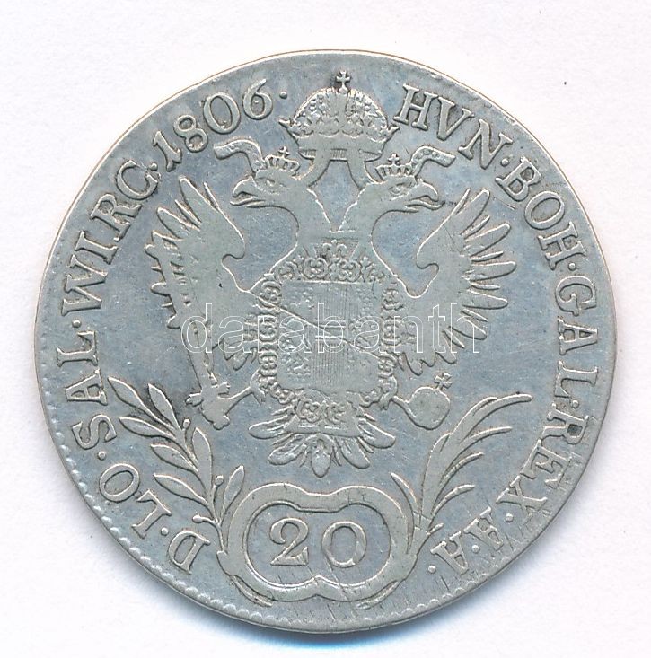 Krause KM#2141, Unger III... https://www.darabanth.com/de/419-Fernauktion/419.0/Numismatik/Ungarische-Munzen-und-Munzen-mit-ungarischem-Munzzeichen~2000009/1806B-20kr-Ag-I-Ferenc-T2-3--Krause-KM232141-Unger-III-1376a-Huszar-1967~II2648139