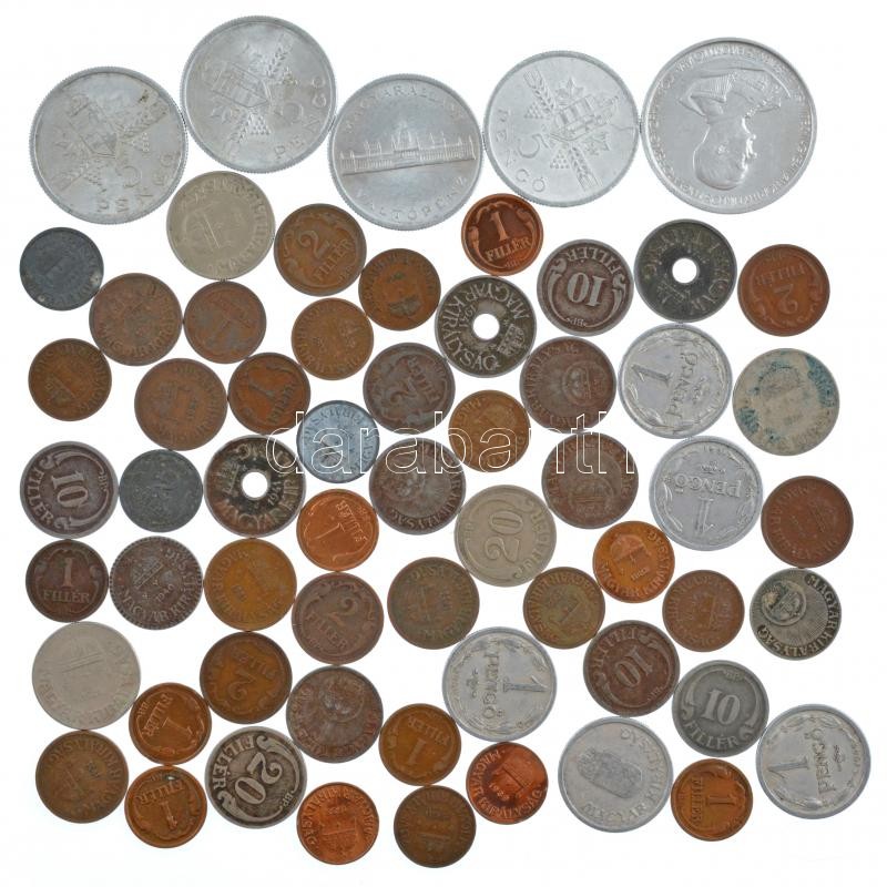 Beschreibung: 1926-1945. 1f-5P (61db), közte 1943. 5P Al "Horthy Miklós születésének 75. évfordulójára" + 1945. 5P Al "Parlament" (4x) + 1926. 20f Cu-Ni + 1926-1938. 50f Cu-Ni (3db, 2xklf) + 1931. 2f Br (4x) T:2-3