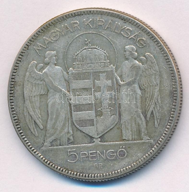 1930. 5P Ag "Horthy jobbra" T:2-,3 Adamo P8 https://www.darabanth.com/de/419-Fernauktion/419.0/Numismatik/Ungarische-Munzen-und-Munzen-mit-ungarischem-Munzzeichen~2000009/1930-5P-Ag-Horthy-jobbra-T2-3-Adamo-P8~II2651755
