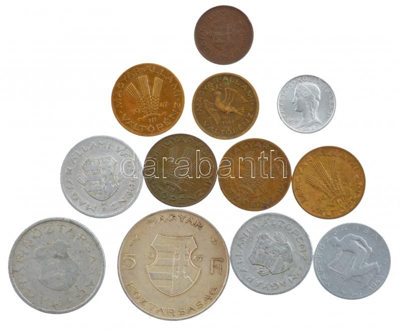 Beschreibung: 1946. 1Ft Al (2x) + 1946. 2Ft Al + 1947. 5Ft Ag "Kossuth" + 1946-1947. 2f-20f tombak (6db, 4xklf) + 1948. 5f Al + 1948. 50f Al T:1--3
