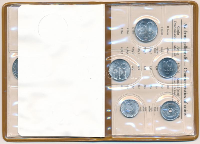Beschreibung: 1980. 2f-10Ft 9xklf "Magyar Népköztársaság" forgalmi érméi középbarna műbőrtokban T:1