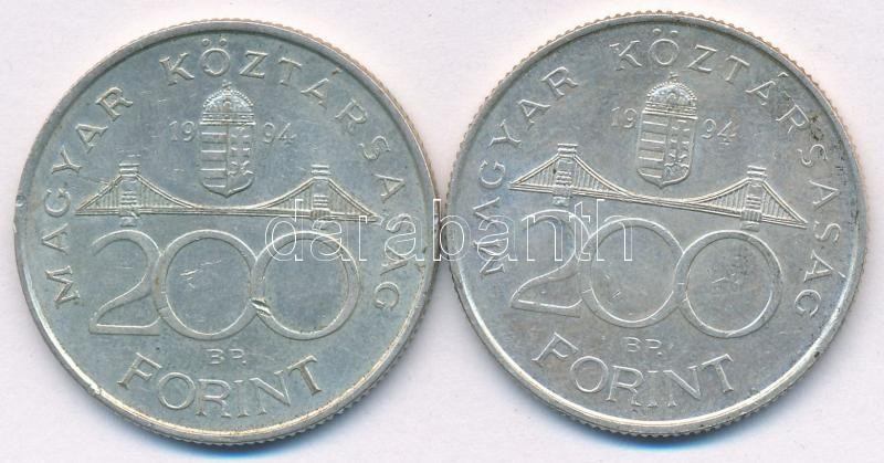 Beschreibung: 1994. 200Ft Ag "Deák" (2x) T:2 patina Adamo F13.1