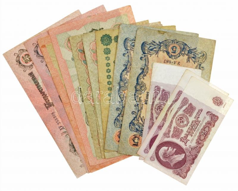 16db-os orosz bankjegy tétel, nagyrészt a századfordulóról T:III,III- folt, szakadás