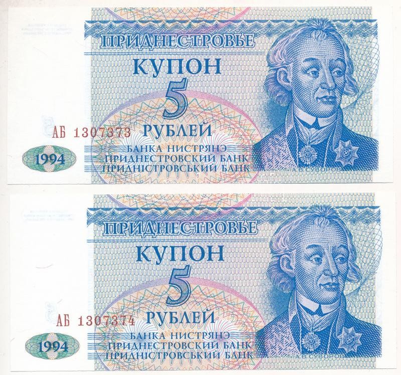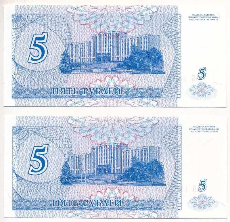 Transnistria 1994. 5 Ruble (2x) consecutive serials C:UNC