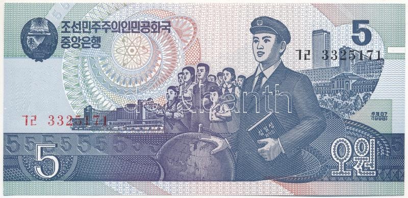 Észak-Korea 1998. 5W T:I North Korea 1998. 5 Won C:UNC Krause P#40 https://www.darabanth.com/de/419-Fernauktion/419.0/Numismatik/Weltweit-Banknoten~2000014/Eszak-Korea-1998-5W-TI-North-Korea-1998-5-Won-CUNC-Krause-P2340~II2646870