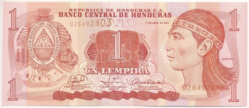 Krause P#89a https://www.darabanth.com/de/419-Fernauktion/419.0/Numismatik/Weltweit-Banknoten~2000014/Honduras-2008-1L-TI-Honduras-2008-1-Lempira-CUNC-Krause-P2389a~II2646957