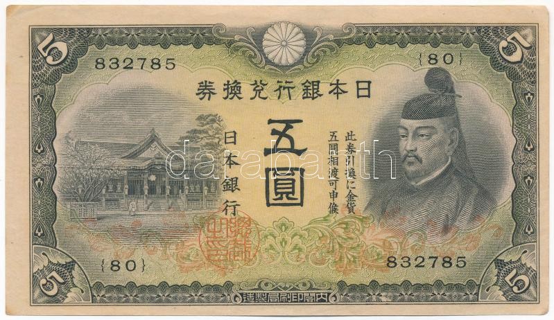 Krause P#43 https://www.darabanth.com/de/419-Fernauktion/419.0/Numismatik/Weltweit-Banknoten~2000014/Japan-1942-5J-TII-Japan-1942-5-Yen-CXF-Krause-P2343~II2646623