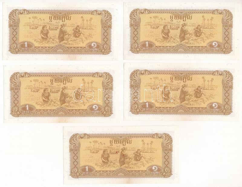 Cambodia 1979. 1 Riel (... https://www.darabanth.com/de/419-Fernauktion/419.0/Numismatik/Weltweit-Banknoten~2000014/Kambodzsa-1979-1R-5x-sorszamkovetok-TI-I--Cambodia-1979-1-Riel-5x-consecutive-serials-CU~II2646604