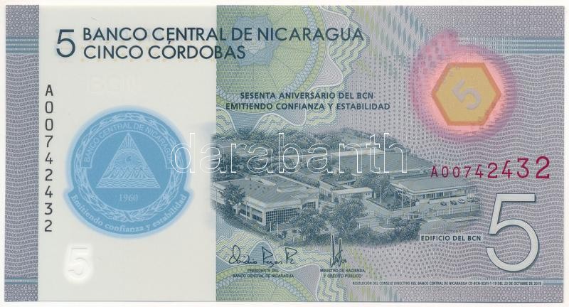 Nicaragua 2020. 5C "Nicaragua Központi Bankjának 60. évfordulója" emlékkiadás T:I Nicaragua 2020. 5 Córdobas "60 Years of the Central Bank of Nicaragua" commemorative issue C:UNC Krause P#219a