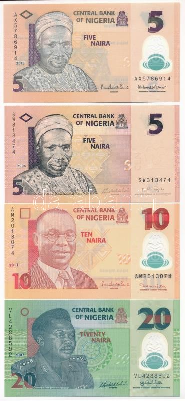 Nigeria 2006. 5 Naira + 2013. 5 Naira + 2011. 10 Naira + 2007. 20 Naira C:UNC