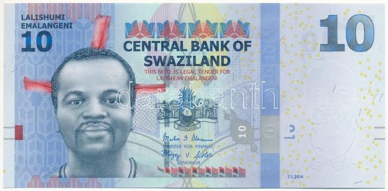 Swaziland 2014. 10 Em... https://www.darabanth.com/de/419-Fernauktion/419.0/Numismatik/Weltweit-Banknoten~2000014/Szvazifold-2014-10E-AB-0564298-TI-Swaziland-2014-10-Emalangeni-AB-0564298-CUNC-Krause-P23~II2647466
