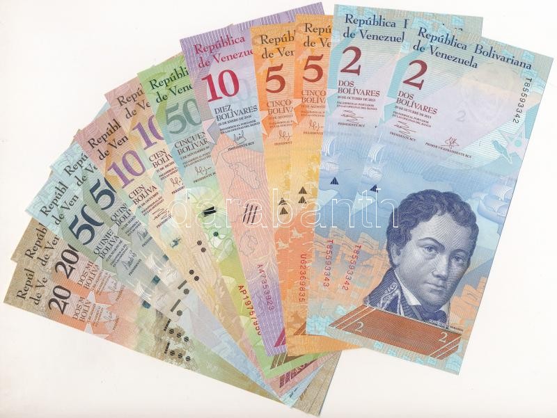 Venezuela 2012-2018. 2B-2000B (12db, 8xklf, közte 2013. 2B (2x) sorszámkövető, 2014. 5B (2x) sorszámkövető, 2017. 500B (2x) sorszámkövető, 2016. 2000B (2x) sorszámkövető) T:I,I- Venezuela 2012-2018. 2 Bolívares - 2000 Bolívares (12pcs, 10xdiff, within 2013. 2 Bolívares (2x) consecutive serials, 2014. 5 Bolívares (2x) consecutive serials, 2017. 500 Bolívares (2x) consecutive serials, 2016. 2000 Bolívares (2x) consecutive serials) T:I,I-