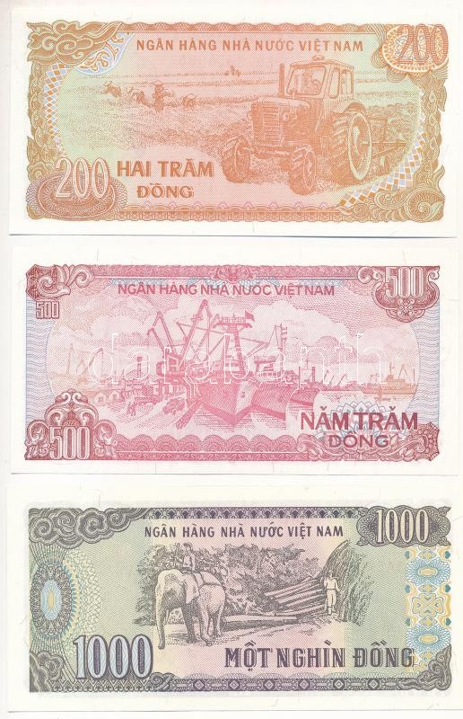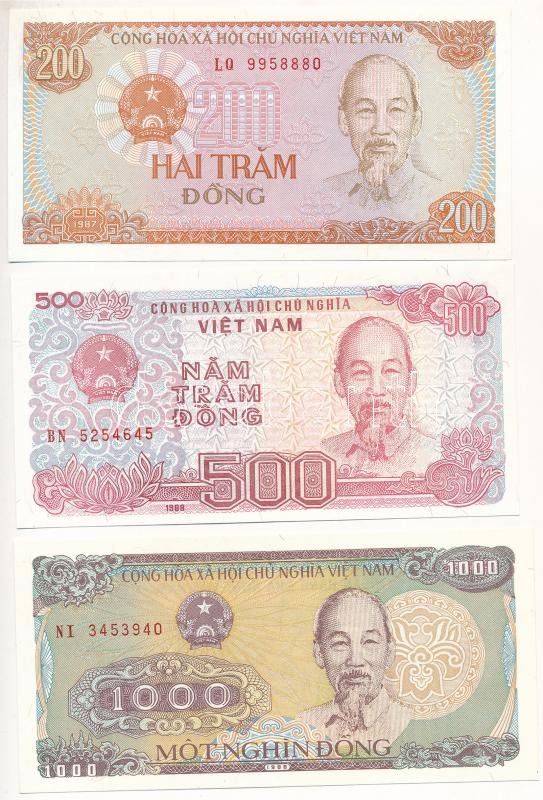 Vietnam 1987. 20 Dong + 1988. 500 Dong + 1988. 1000 Dong C:UNC