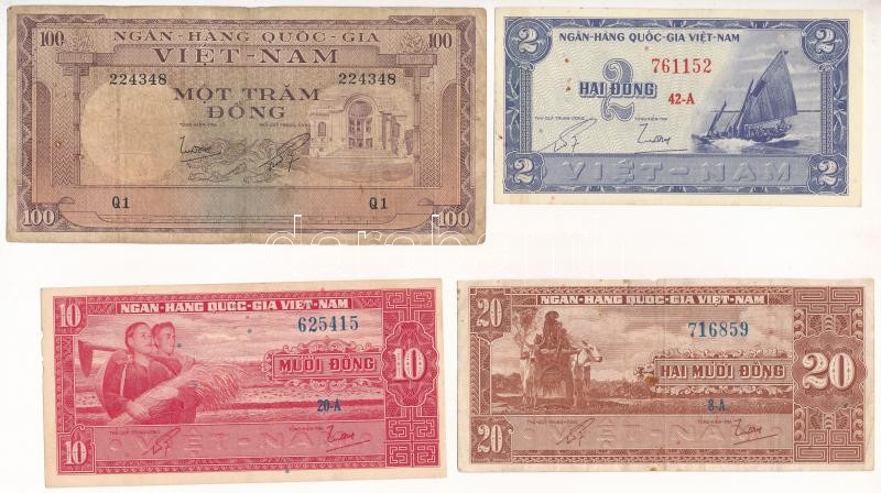Vietnam / Dél-Vietnam 1955. 2D + 1962. 10D + 1962. 20D + 1966. 100D T:... https://www.darabanth.com/de/419-Fernauktion/419.0/Numismatik/Weltweit-Banknoten~2000014/Vietnam-Del-Vietnam-1955-2D-plus-1962-10D-plus-1962-20D-plus-1966-100D-TII-III--Vietnam-South-Viet~II2646585