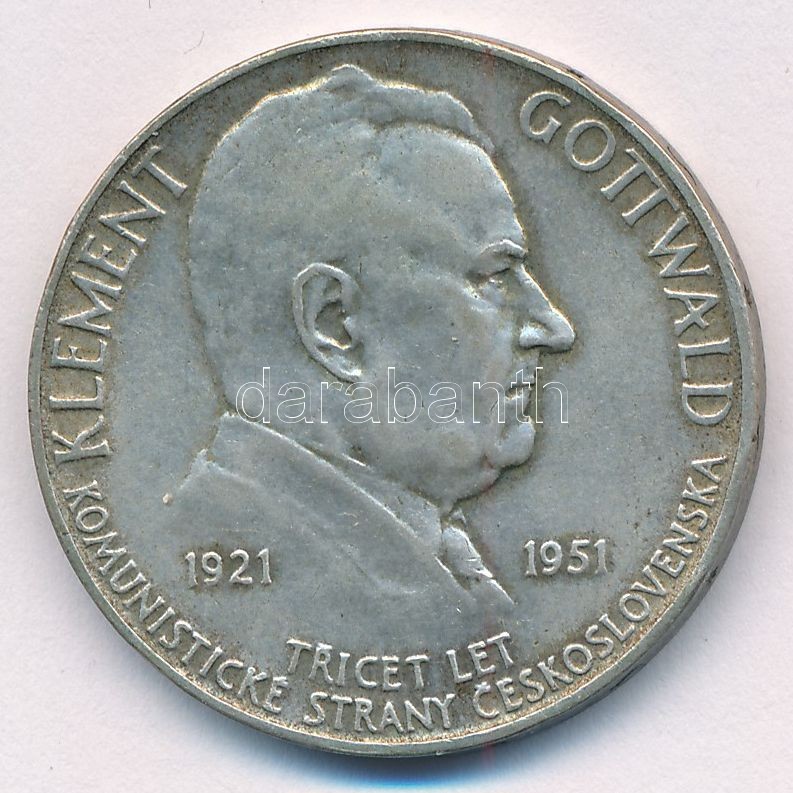 Csehszlovákia 1951. 100K Ag "Klement Gottwald" T:2 patina, p... https://www.darabanth.com/de/419-Fernauktion/419.0/Numismatik/Weltweit-Munzen~2000015/Csehszlovakia-1951-100K-Ag-Klement-Gottwald-T2-patina-ph--Czechoslovakia-1951-100-Korun-Ag-~II2629414