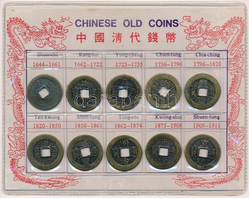 Kína ~1600-1900. 10db szuvenír érme szett fóliacsomagolásban T:2,2-