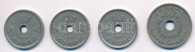 Beschreibung: Norvégia 1925. 1K Cu-Ni + 1926. 50ö Cu-Ni + 1927. 50ö Cu-Ni + 1929. 50ö Cu-Ni (ritkább évjárat) T:2-,3