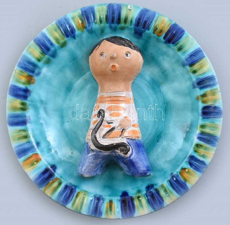 Beschreibung: Kiss Roóz Ilona (1920-2010): Íjjász, mázas kerámia, kézzel festett, jelzett, hibátlan, d: 20 cm