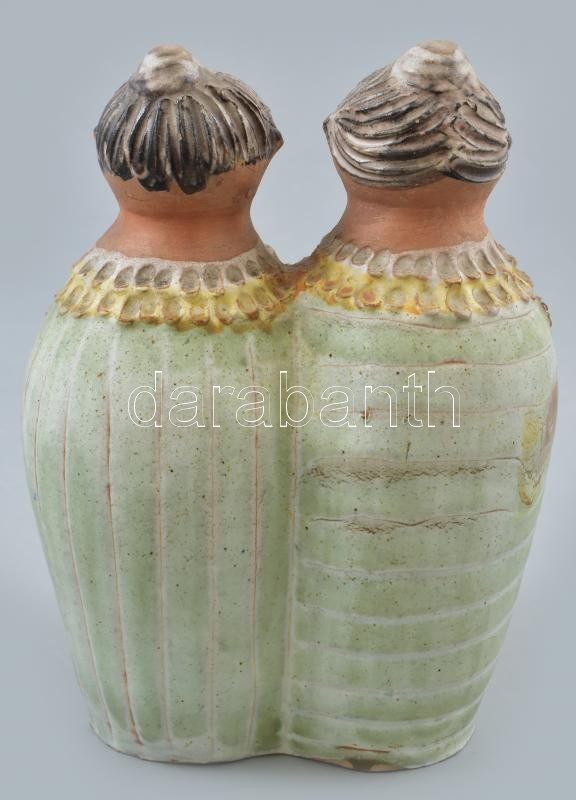 Beschreibung: Kiss Roóz Ilona (1920-2010): Lányok, mázas kerámia, kézzel festett, jelzett, hibátlan, m: 20 cm