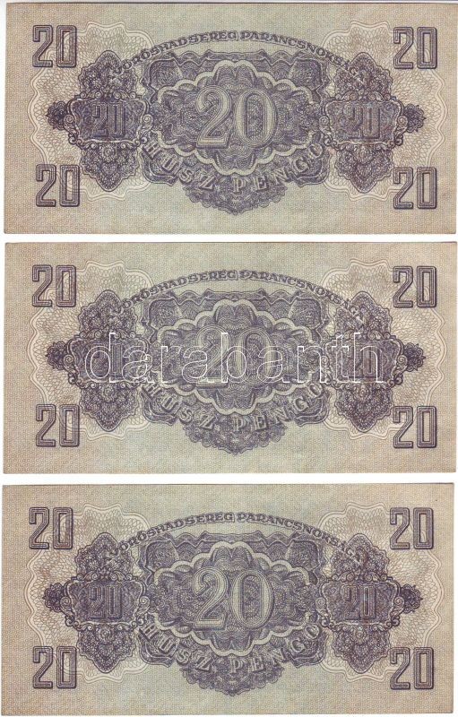 Beschreibung: 1944 20P "V.H" (3x) egymásutáni sorszámokkal T:I