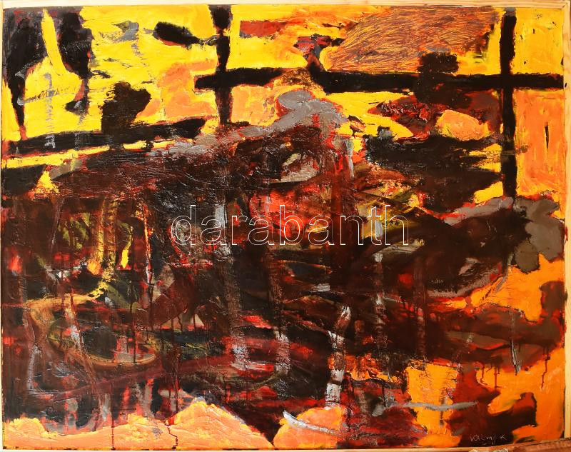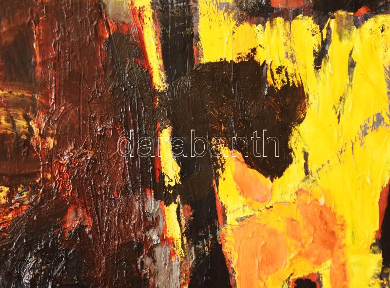 Klimó Károly (1936-): Narancsok és sárgák (cím nélkül), 2011. Olaj, fa, jelezve jobbra lent. 98x127 cm. Fakeretben. KIZÁRÓLAG SZEMÉLYES ÁTVÉTEL, NEM POSTÁZZUK! / Károly Klimó (1936-): Oranges and yellows (untitled), 2011. Oil on wood, signed lower right. Framed. 98x127 cm. ONLY PERSONAL COLLECTION AT OUR OFFICE!