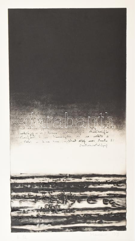 Maurer Dóra (1937-): B 12, 1971. Akvatinta, mezzotinto, papír. Jelzett. 47x25 cm. Paszpartuban. Párdarabja reprodukálva: Maurer Dóra grafikai munkássága 1957-1981 - Nyomhagyás / nyomtatás, 144. Bp., 2017, Magyar Képzőművészeti Egyetem 47x25 cm / Dóra Maurer (1937-): B 12, 1971. Aquatint and mezzotint on paper, signed, in passepartout. 47x25 cm.
