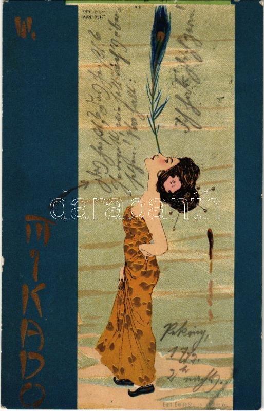 1901 Mikado III. Asian style Art Nouveau litho. Emile Storch Vienne s:... https://www.darabanth.com/de/42-Gross-Auktion/42.1/Ansichtskarten/Kunstlerkarten~17502/1901-Mikado-III-Asian-style-Art-Nouveau-litho-Emile-Storch-Vienne-s-Raphael-Kirchner-fl~II3124005