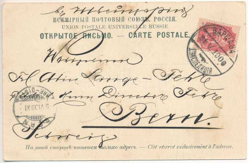 Beschreibung: 1900 Warszawa, Varsovie, Warschau, Warsaw; Hotel Europejski. Naklad St. Winiarskiego, Art Nouveau, floral, litho (creases)