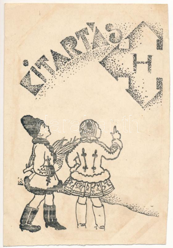 1938 Kitartás! A Magyar Hungarista Mozgalom nyilaskeresztes karácsonyi... https://www.darabanth.com/de/42-Gross-Auktion/42.1/Ansichtskarten/Propaganda-Politik~17508/1938-Kitartas-A-Magyar-Hungarista-Mozgalom-nyilaskeresztes-karacsonyi-udvozlete-propaganda-~II3124026