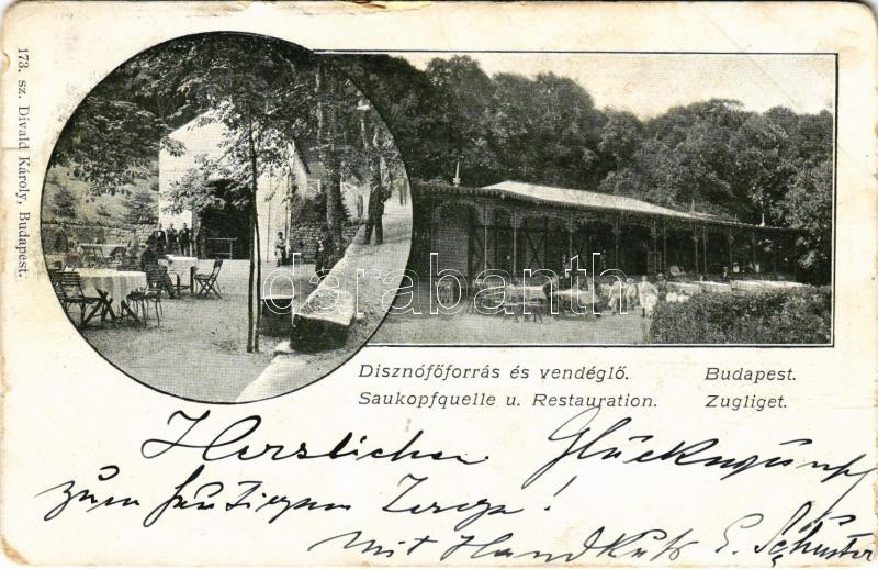 1899 (Vorläufer) Budapest XII. Zugliget, Disznófő forrás és vendéglő, ... https://www.darabanth.com/de/42-Gross-Auktion/42.1/Ansichtskarten/Ungarn~17443/1899-Vorlaufer-Budapest-XII-Zugliget-Disznofo-forras-es-vendeglo-etterem-kertje-Divald~II3103193