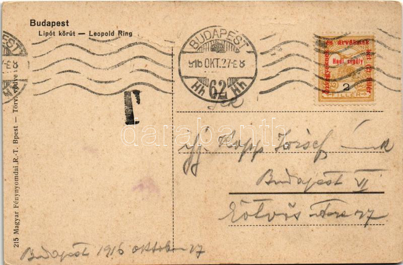 1916 Budapest XIII. Lipót körút, Vígszínház, mozi. Magyar zászlós hazafias keret II. Vilmos császárral, Ferenc Józseffel és katonákkal. Art Nouveau (fa)