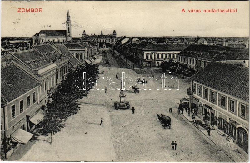 1911 Zombor, Sombor; a város madártávlatból, üzletek. Kaufmann Emil ki... https://www.darabanth.com/de/42-Gross-Auktion/42.1/Ansichtskarten/Vojvodina~17449/1911-Zombor-Sombor-a-varos-madartavlatbol-uzletek-Kaufmann-Emil-kiadasa-general-view-shops~II3122181