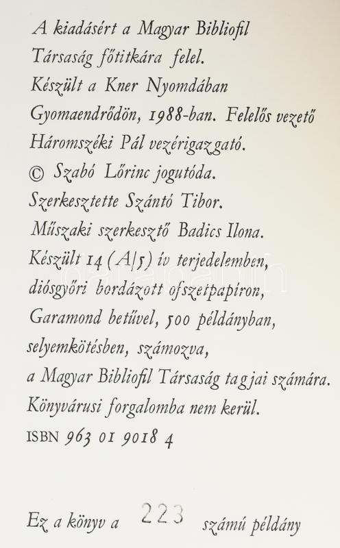 William Shakespeare szonettjei. Kass János illusztrációival. Ford.: Szabó Lőrinc. Bp., 1988, Magyar Bibliofil Társaság,(Gyomaendrőd, Kner-ny.) A kötetet Szántó Tibor tervezte. Kiadói selyem-kötés, kiadói illusztrált papírtokban, jó állapotban. Számozott (223./500) példány. Kereskedelmi forgalomba nem került.