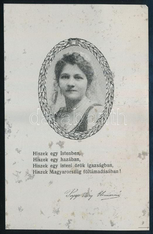 1925 Papp-Váry Elemérné Sziklay Szeréna (1881-1923): A magyar Hiszekeg... https://www.darabanth.com/de/42-Gross-Auktion/42.1/Historische-Dokumenten-Manuskripten/Historische-Dokumenten-Handschriften~17440/1925-Papp-Vary-Elemerne-Sziklay-Szerena-1881-1923-A-magyar-Hiszekegy-szerzoje-kepevel-ellatott~II3114793