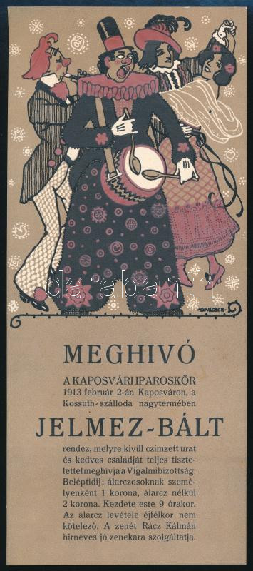 Beschreibung: 1913 Meghívó a Kaposvári Iparoskör Kossuth Szálloda nagytermében rendezett jelmezbálra