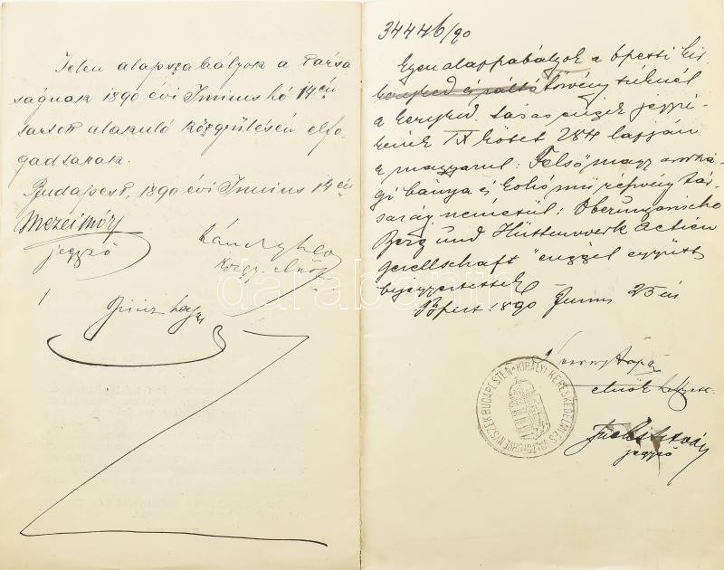 cca 1890 A Felsőmagarországi Bánya- és Kohómű-Részvénytársaság alapsza... https://www.darabanth.com/de/42-Gross-Auktion/42.1/Kunst-Skulpturen-Historische-Dokumenten-andere-Sammelgebiete/Drucksachen~17439/cca-1890-A-Felsomagarorszagi-Banya-es-Kohomu-Reszvenytarsasag-alapszabalyai-magyar-es-nemet~II3118811