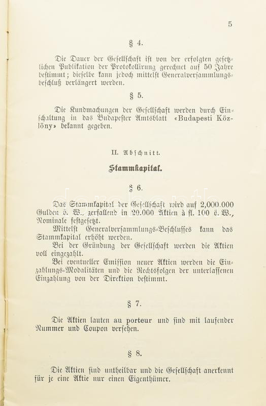 Beschreibung: cca 1890 A Felsőmagarországi Bánya- és Kohómű-Részvénytársaság alapszabályai magyar és német nyelven, kiadja: Posner Károly Lajos és Fia, 27p