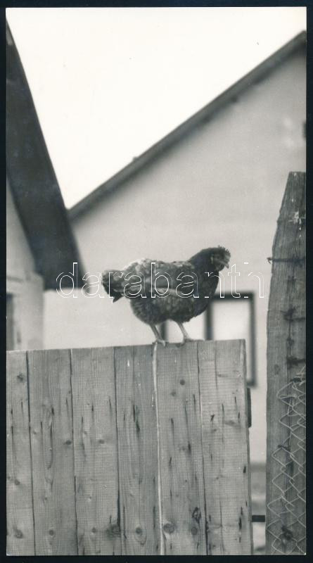 Beschreibung: 1963 Horváth István debreceni fotóművész feliratozott, vintage fotóművészeti alkotása (Tyúk), ezüst zselatinos fotópapíron, 23x12,7 cm