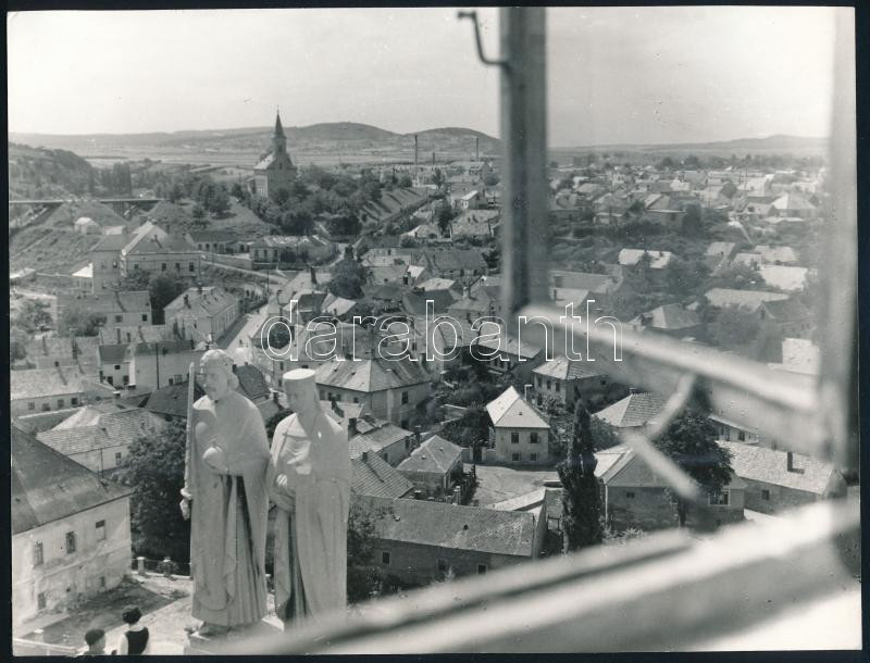 Beschreibung: 1963 Mihályi Gyula székesfehérvári fotóművész feliratozott, vintage fotóművészeti alkotása (Kilátás a veszprémi várból), ezüst zselatinos fotópapíron, 18x24 cm