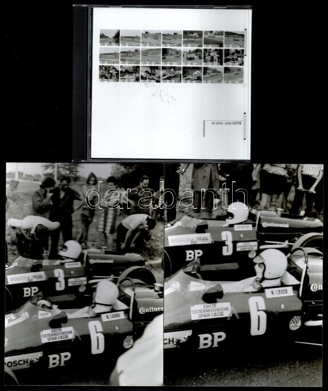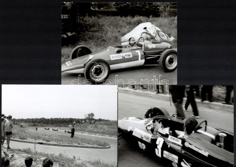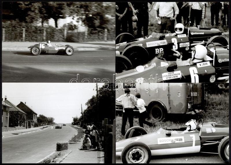 1969 Sopron Grand Prix fotói, 21 db fotó, 25 kocka negatív, valamint CD-rom melléklet a fotókkal, fotók: 12x18 cm, cca 3,5x4 cm. Az 1969-ben nemzetközi formulautós versenyt rendeztek Sopronban, a magyar színeket egyedül Kiss Ferenc képviselte. A korban nagy eseménynek számító versenyre mintegy 15 ezren voltak kíváncsiak. A verseny győztese az akkor még csak 20 éves Niki Lauda (1949-2019) lett. A későbbi világbajnok élete első futamgyőzelmét aratta a versenyen.